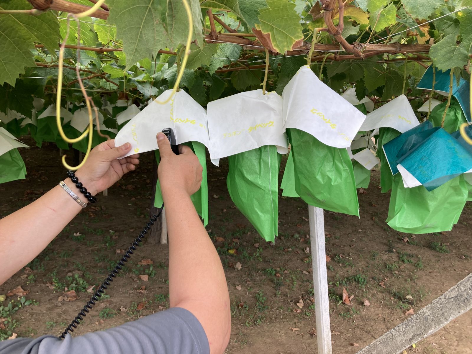 使用充電式超音波熔接機操作銀黑布、黑地膜、農用塑膠布、葡萄傘罩與盆栽(苗)標籤等固定位置